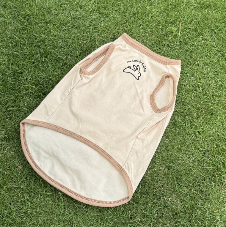 The "T-Shirt" is a high-quality, sleeveless tee made from fabric that is significantly softer and more comfortable than standard brands on the market, prioritizing the comfort of the dogs, cats, and rabbits who wear it.
