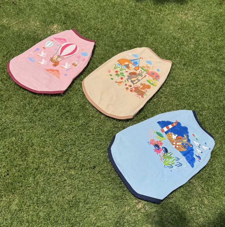เป็นชุดเสื้อยืดแขนกุดในผ้าคุณภาพสูง ที่มีความนุ่มและใส่สบายกว่าแบรนด์ทั่วไปในท้องตลาด เน้นให้ความสบายตัวกับ น้องหมา น้องแมว และกระต่ายที่สวมใส่ ตัดด้วยขอบสีเข้มเพื่อขับขาที่ออกมาจากชุด ทรงชุดเป็นทรงโค้ง บริเวณลำตัวใส่สบาย เน้นคว้านไหล่สำหรับใส่ในอากาศร้อนของประเทศไทย ตัวผ้ามีลักษณะยืดนิดหน่อยเพื่อให้ไหลไปตามสรีระของน้องหมาน้องแมว